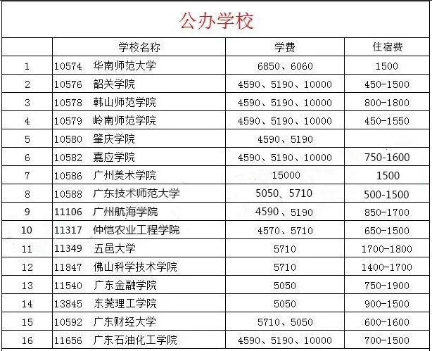 2020 广东专插本 34 所院校学费及住宿费是多少